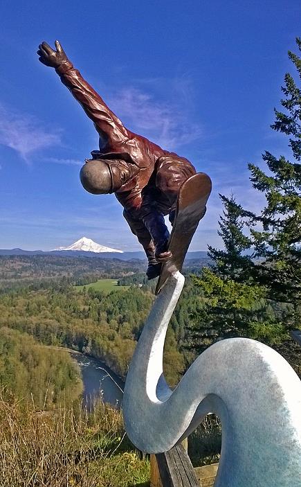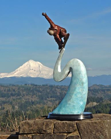 Although it is not obvious this snowboarder is of a woman. With so many women in this sport, it only seemed right that I depict one for this sculpture.
